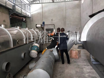 工人在国外调试振动流化床现场